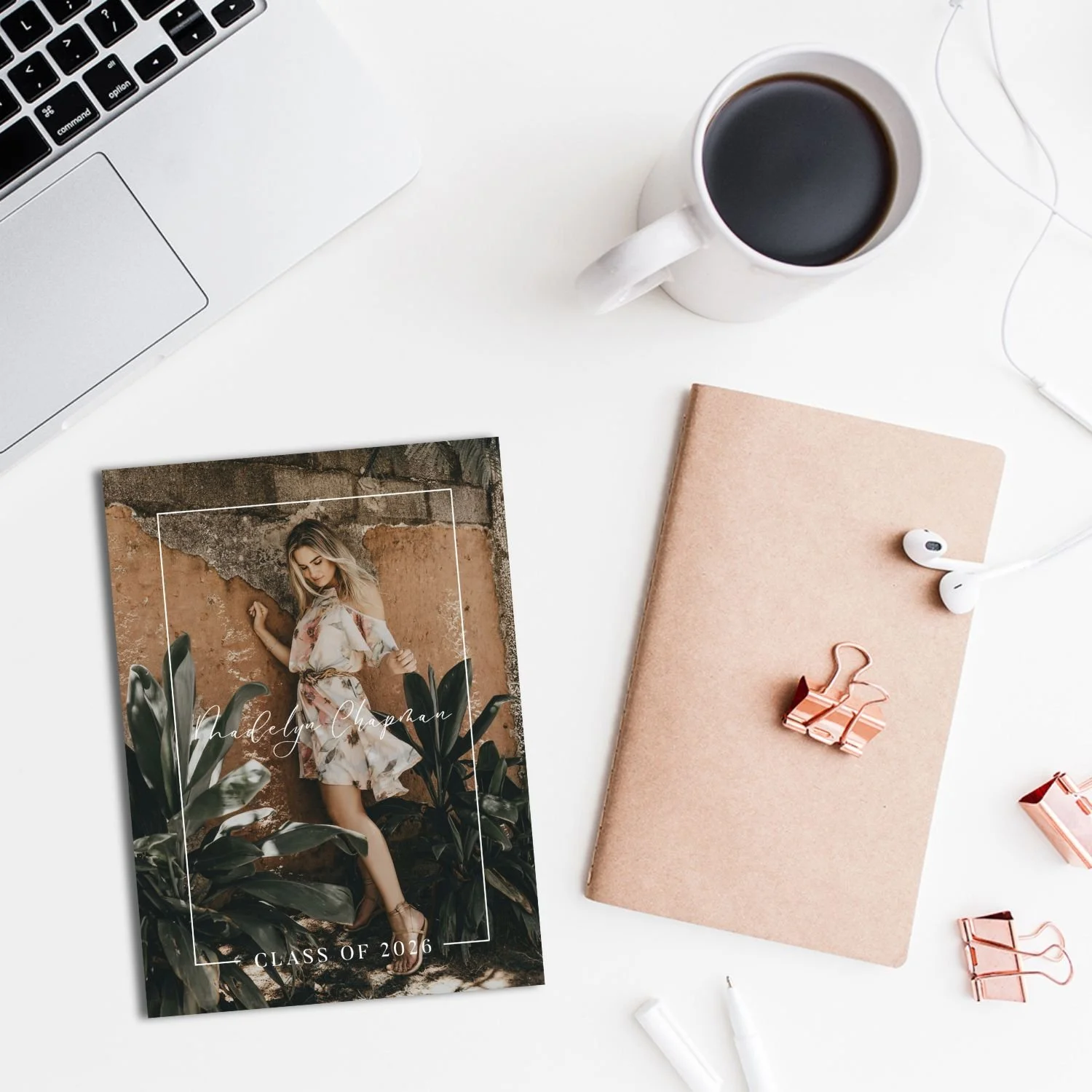This graduation invitation template is perfect for senior guys but will work well for girls too. This senior announcement card has a bit of an urban feel with signature type and modern details. Your senior guys will be excited to show off the images from their portrait session with this graduation card. Featured Images by Whereslugo via Unsplash.